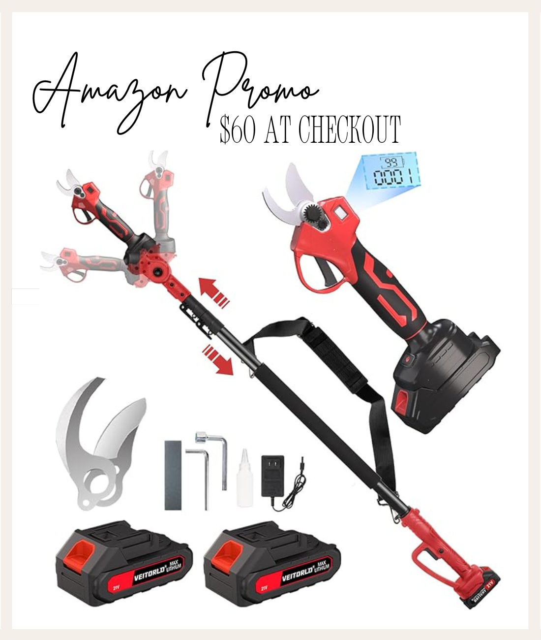 $60 2-In-1 Cordless Electric Pole Pruning Shears at checkout!