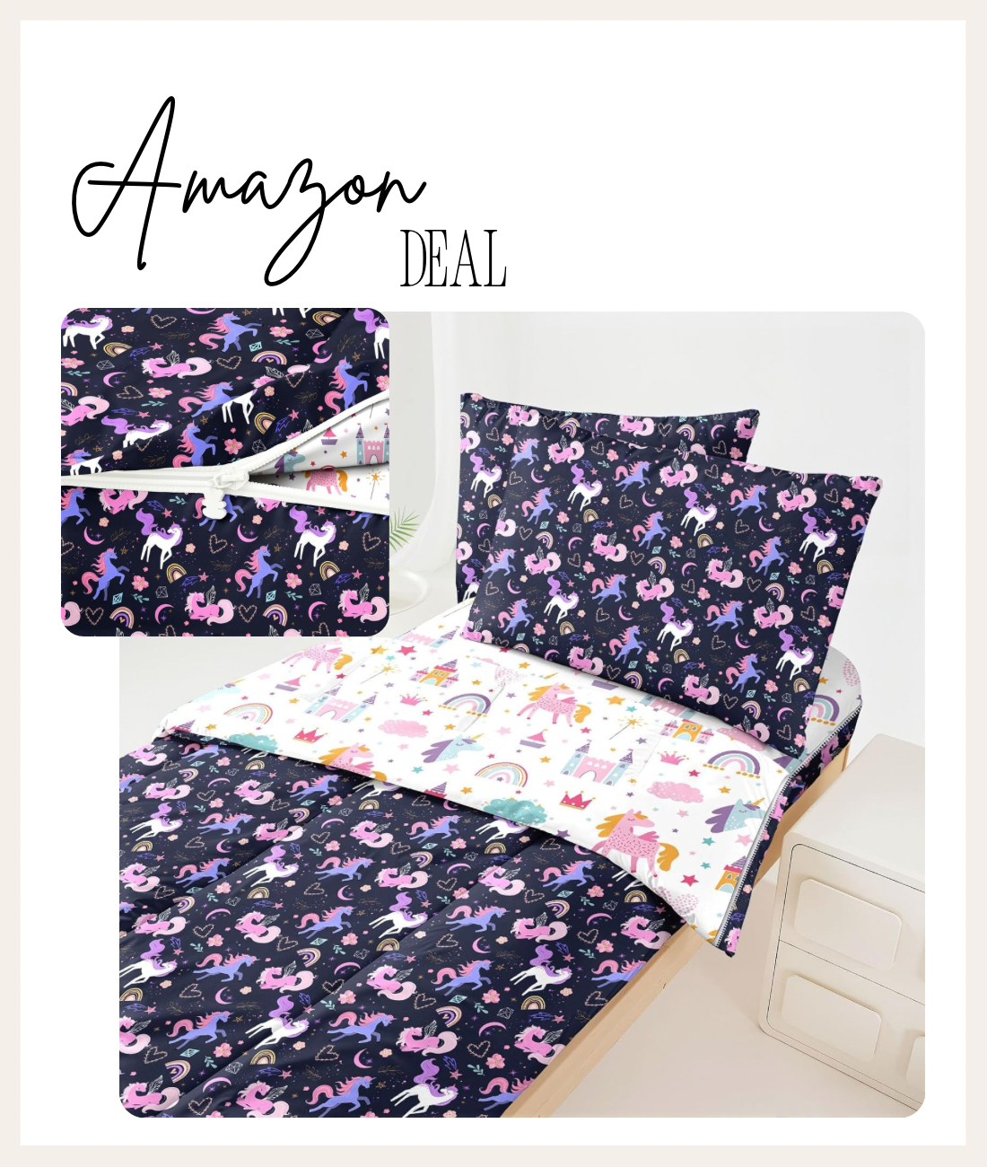 Unicorn zip bedding (great for bunk beds) $15!